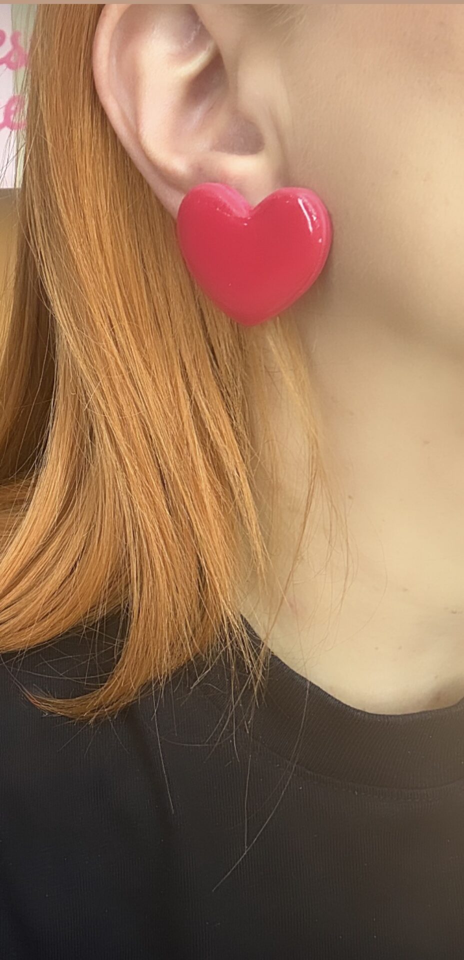 Σκουλαρίκια Κόκκινες Καρδιές χειροποίητα από πολυμερικό πηλό.