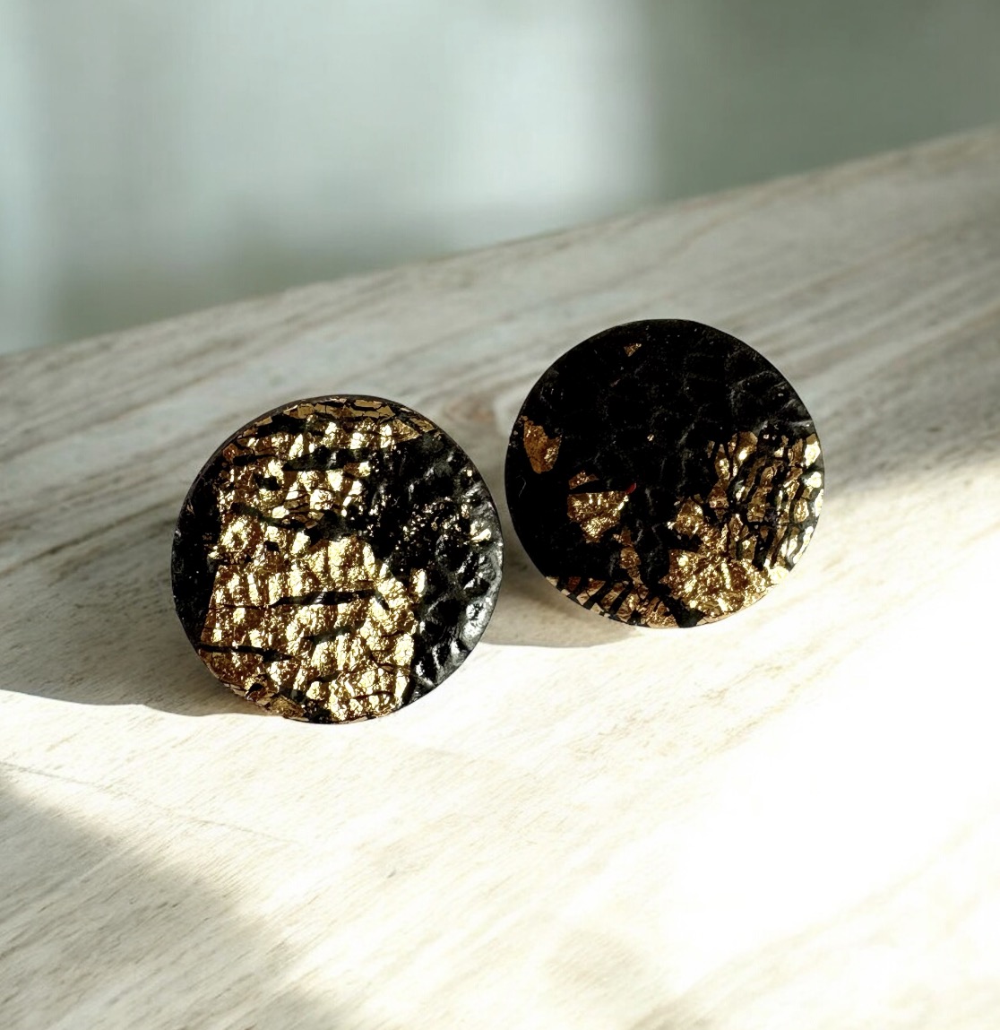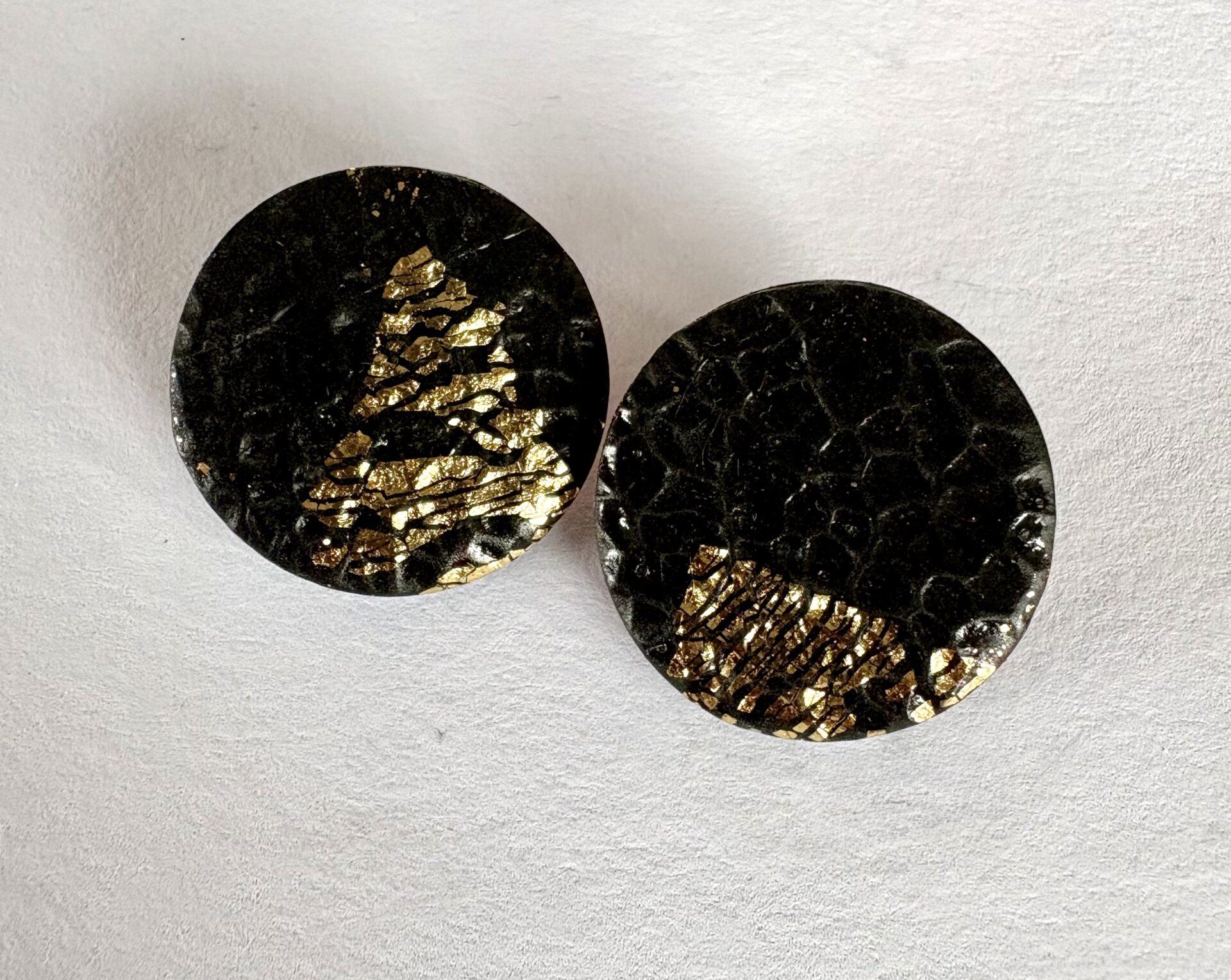 Σκουλαρίκια Μαύρο & Χρυσό,χειροποίητα από πολυμερικό πηλό.