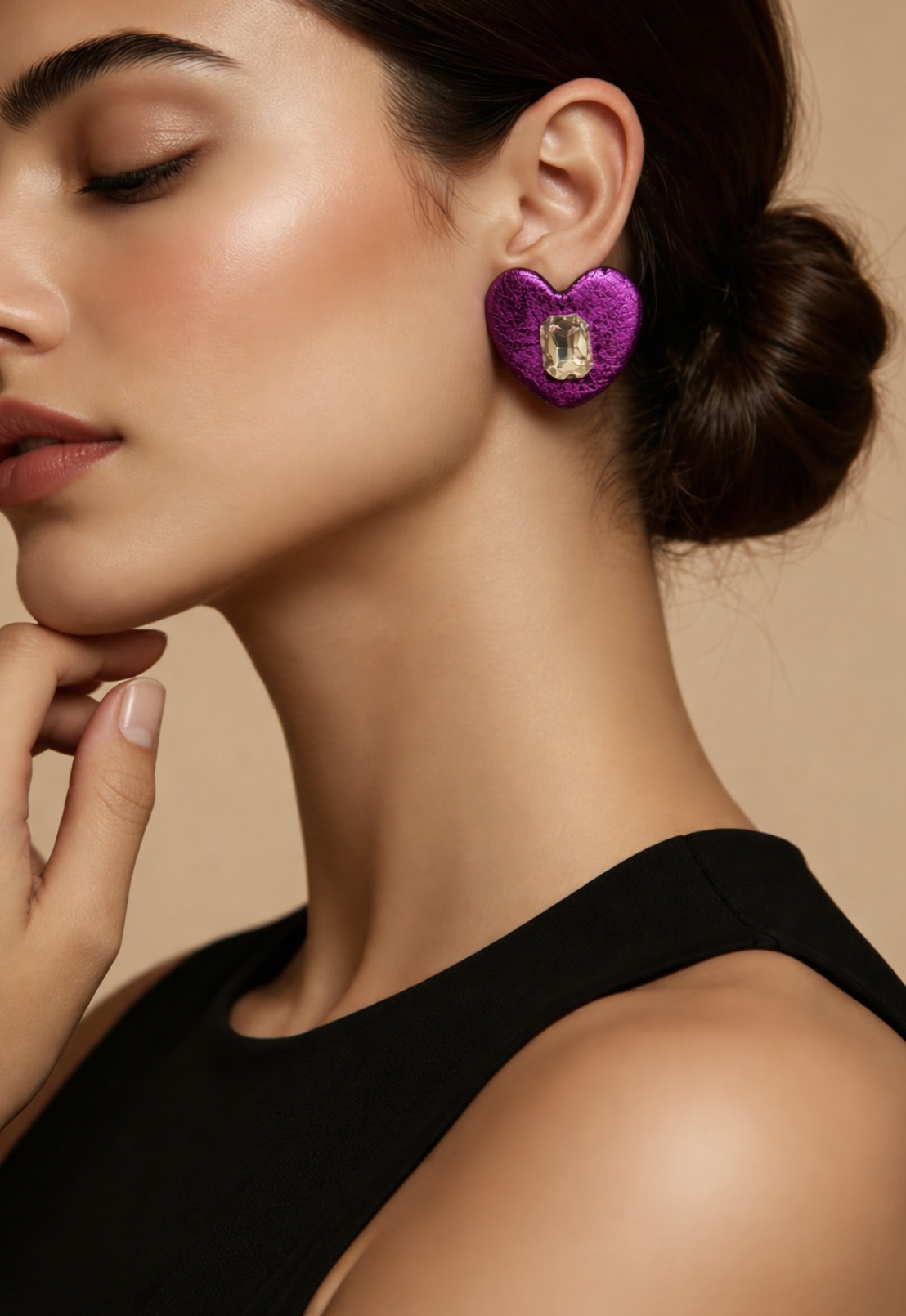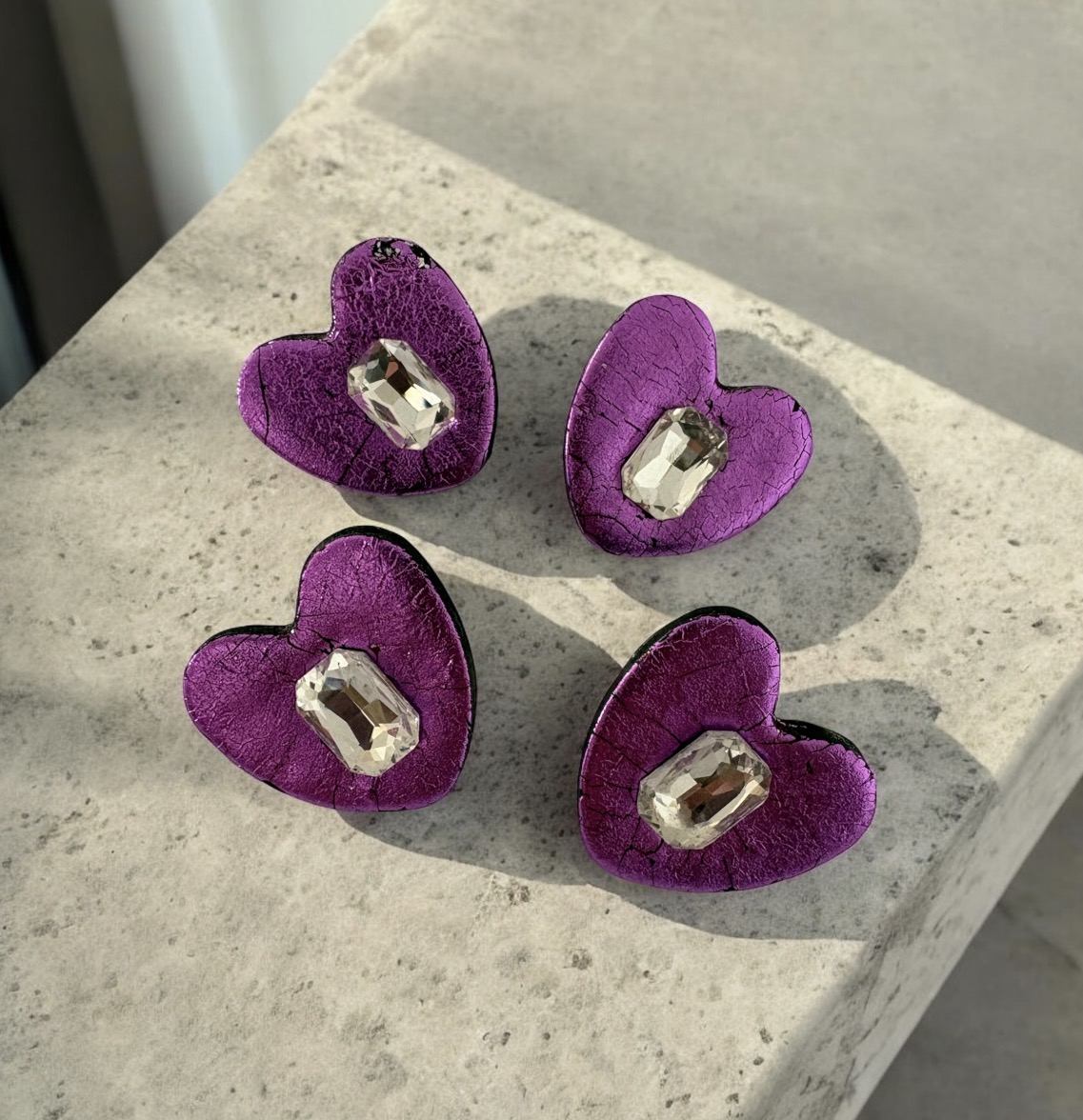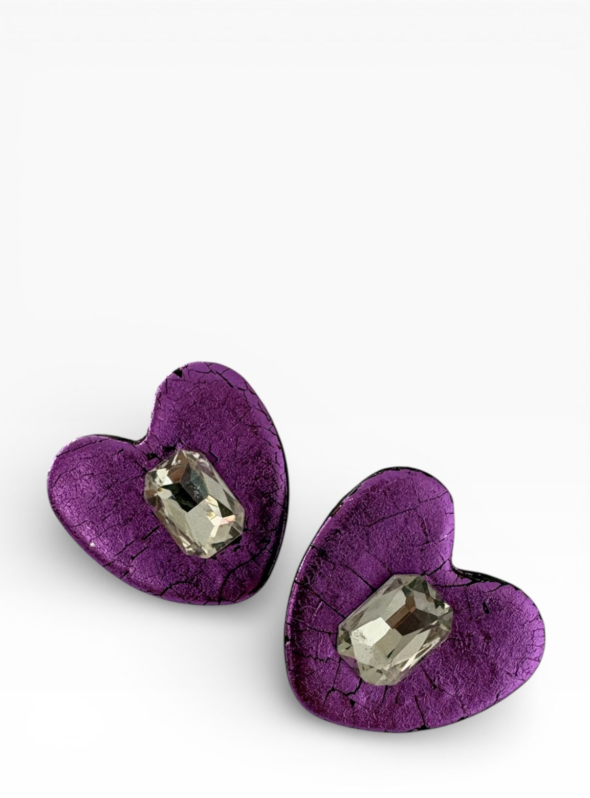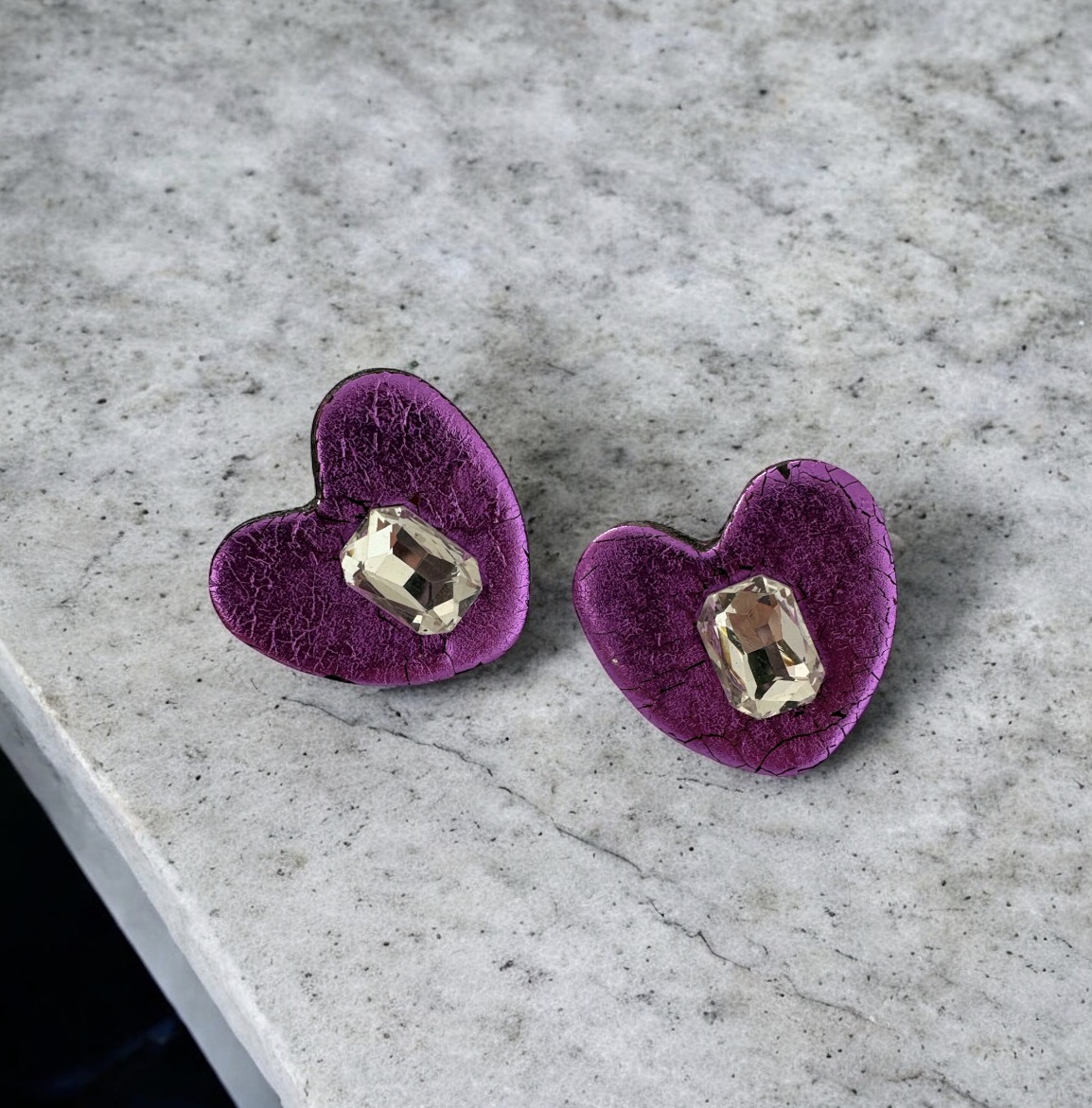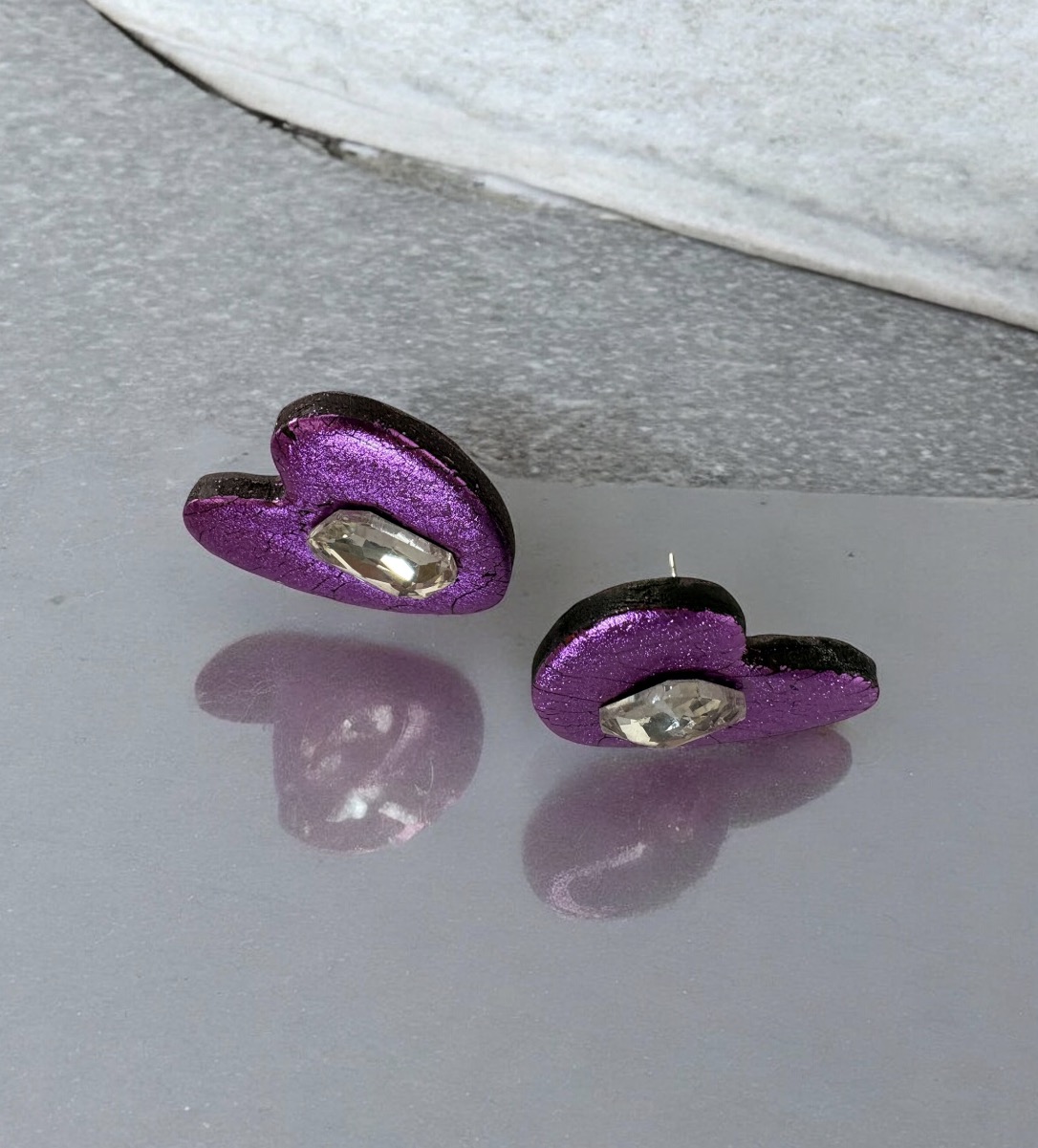 Σκουλαρίκια Μώβ Καρδιά,χειροποίητα από πολυμερικό πηλό.