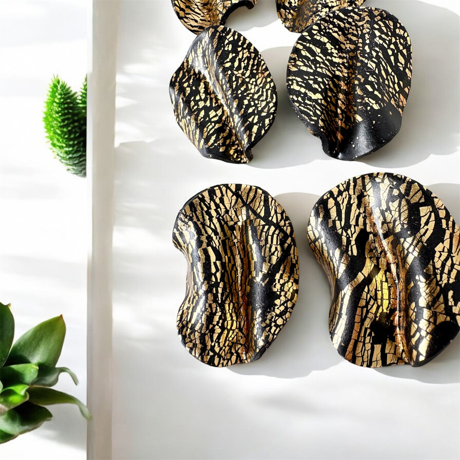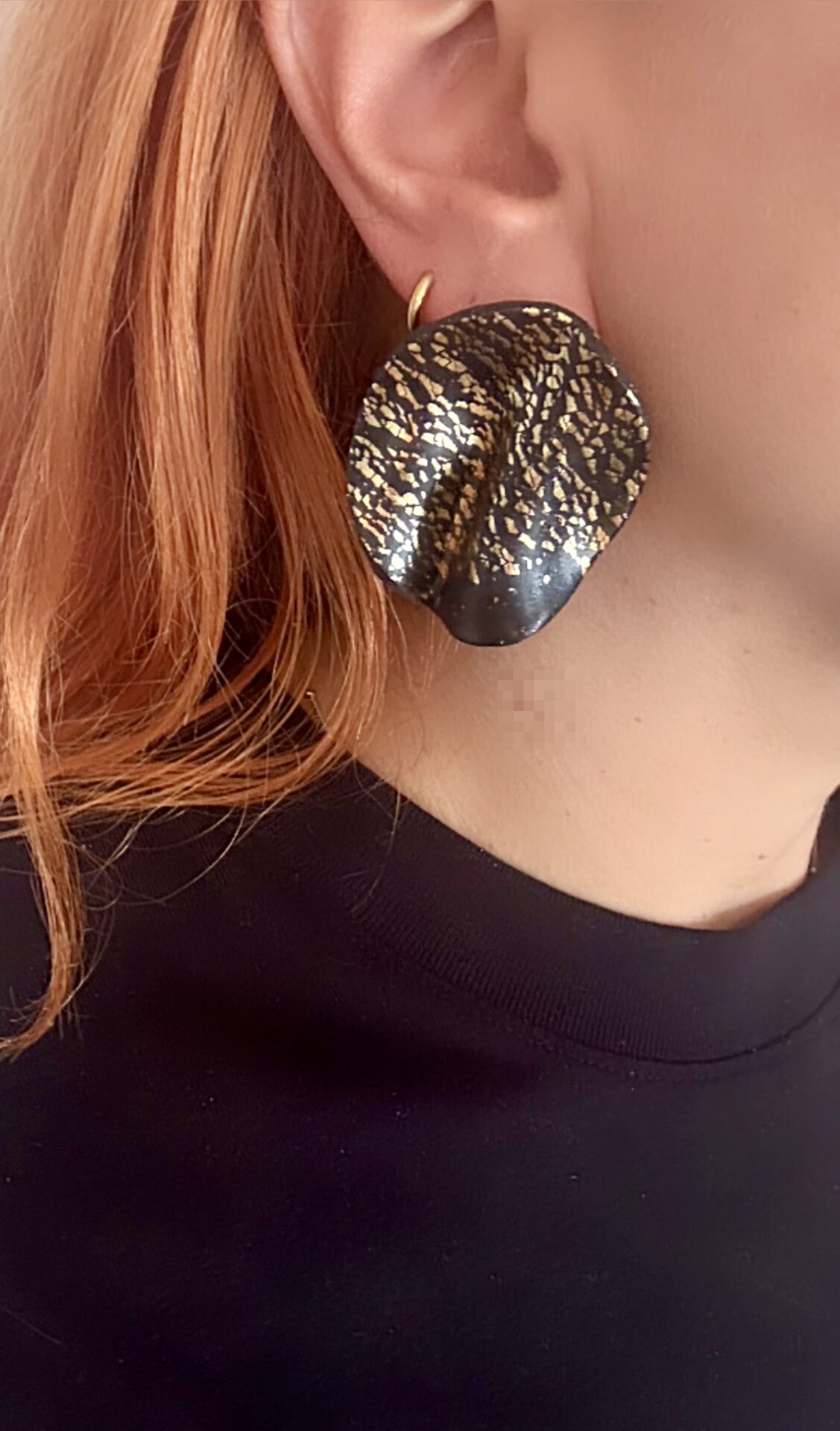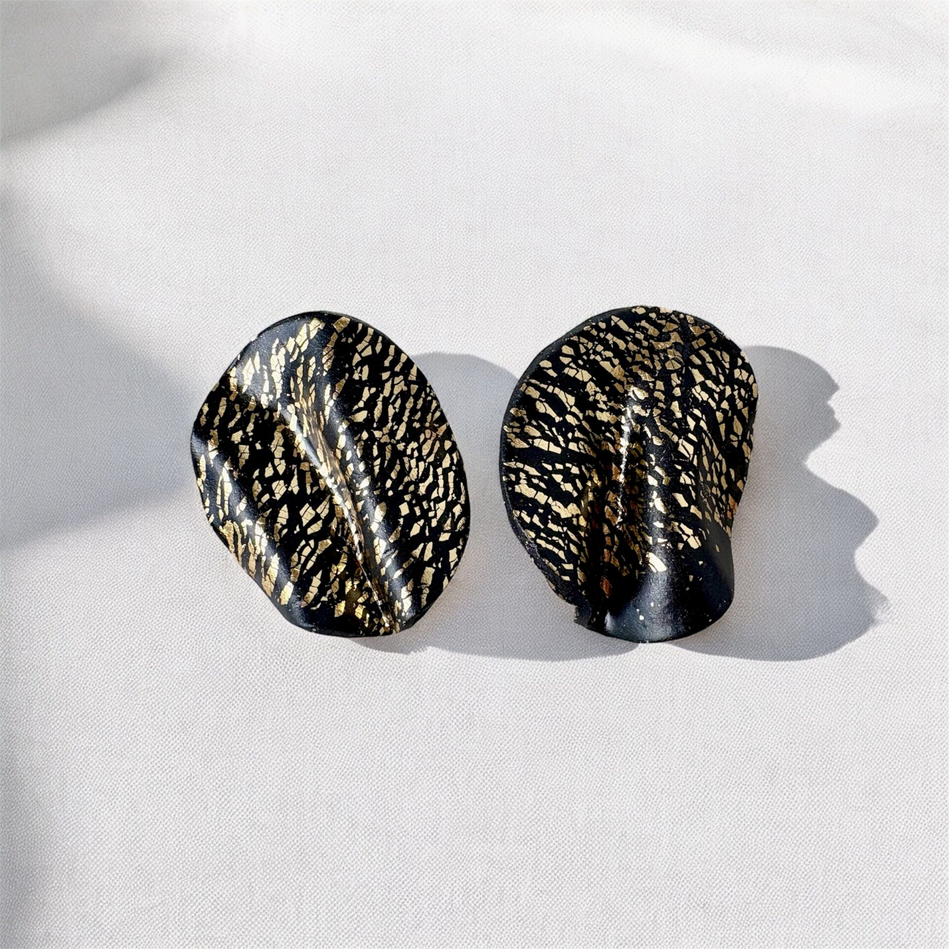 Σκουλαρίκια Χρυσό Κύμα,χειροποίητα απο πολυμερικό πηλό κυματιστό χρυσό και μαύρο.