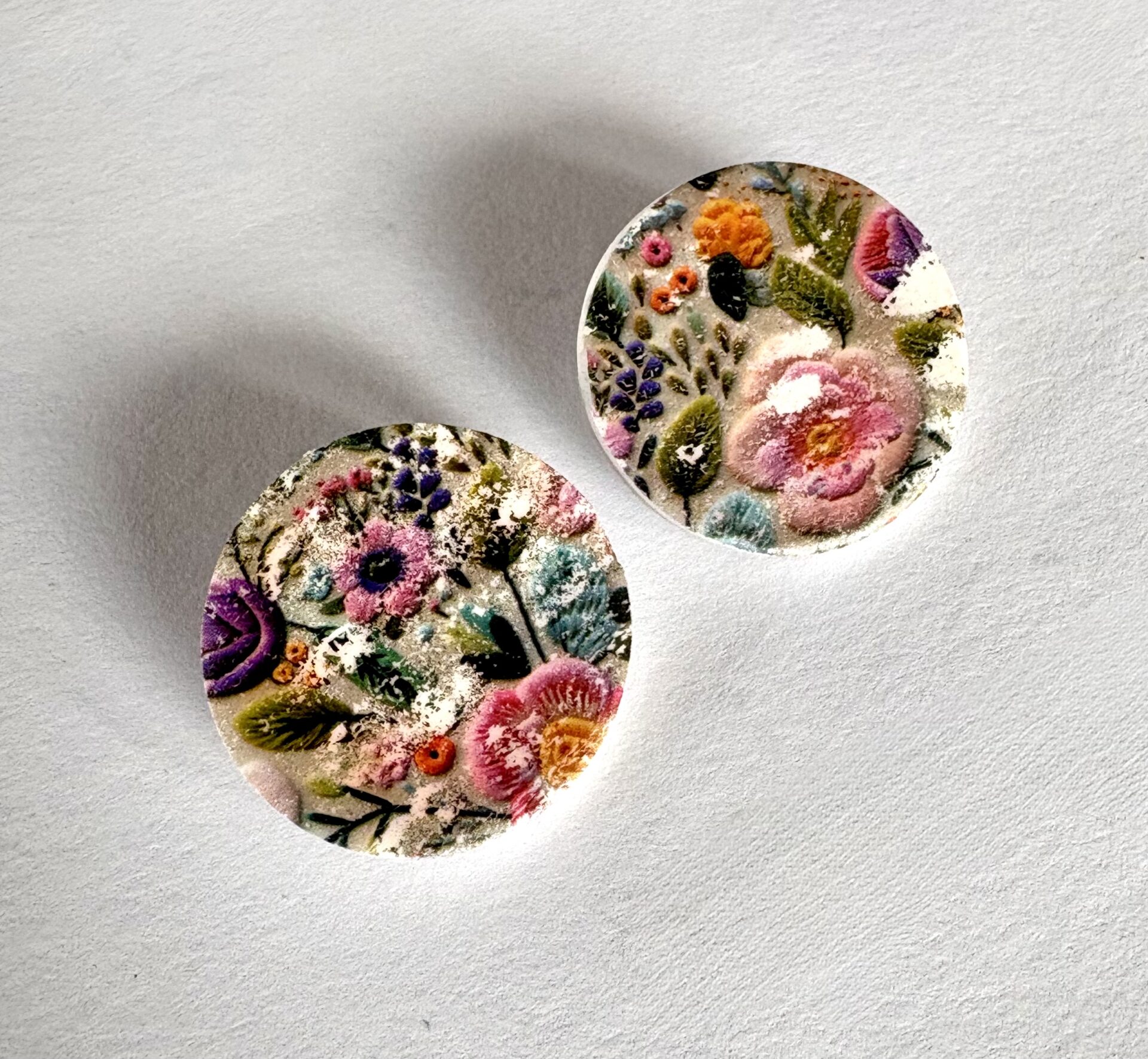 Σκουλαρίκια Vintage Floral,χειροποίητα από πολυμερικό πηλό.